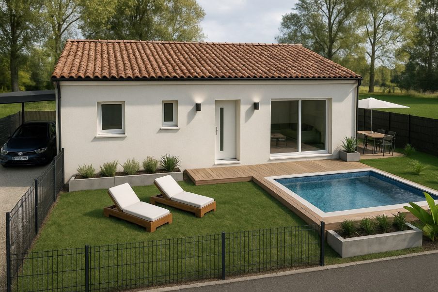 Maison 3 pièces + terrain à Vailhauquès (34570) - Située à Vailhauquès (34570), commune recherchée aux portes de Montpellier pour son cadre résidentiel calme et verdoyant, cette offre terrain + maison se distingue avantageusement des biens similaires du secteur par son excellent équilibre entre emplacement, surface et potentiel. Sur un terrain viabilisé de 350 m² en lotissement, proche des écoles, des commodités et des transports, ce projet de maison neuve de plain-pied de 70 m² propose une conception fonctionnelle et moderne, idéale pour un premier achat ou un couple avec enfant. La maison de type traditionnelle comprend une entrée, un bel espace de vie ouvert avec cuisine US, deux chambres confortables, une salle de bains, un toilette indépendant et un cellier, offrant une circulation fluide et une optimisation des volumes rarement égalées sur des surfaces comparables. Lenvironnement résidentiel, la proximité des services du quotidien et la tranquillité du quartier en font une opportunité attractive et cohérente face aux offres concurrentes souvent plus éloignées ou moins bien situées, tout en conservant un cadre agréable avec des espaces verts à proximité.