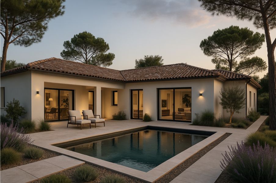 Terrain avec maison 5 pièces à Istres (13800) - Implanté à Istres (13800), dans un secteur calme, sécurisé et offrant une vue privilégiée sur létang, ce projet terrain + maison propose une construction neuve plain-pied de 135 m², idéale pour une vie de famille. Conçue dans un style traditionnel, cette maison moderne et fonctionnelle offre un spacieux espace de vie ouvert avec cuisine US, un cellier, 4 chambres dont une suite parentale avec salle deau et dressing, 2 salles de bains, 2 toilettes, ainsi quune entrée indépendante pour plus de confort. Pensée pour le quotidien des familles, elle dispose également dun garage de 20 m² et simplante sur un magnifique terrain viabilisé de 2 325 m², situé en diffus, à proximité des écoles, des transports et des commodités. Un véritable coin de paradis où enfants et parents profiteront à la fois despaces intérieurs optimisés et dun extérieur rare, sécurisant et propice aux moments en famille.