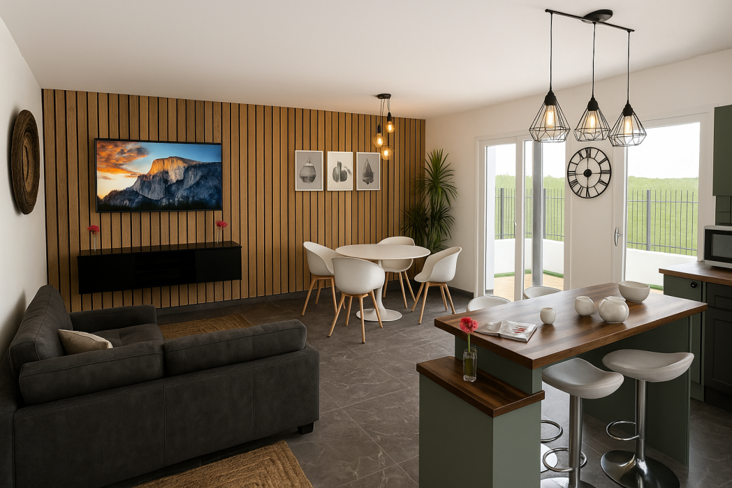 Maison avec terrain Sorgues (84700) - Implantée à Sorgues (84700), cette maison neuve de plain-pied de 86 m² à construire sinscrit sur un terrain viabilisé de 490 m² au cœur dun lotissement agréable, à proximité immédiate des écoles, des transports et des commodités, tout en restant proche despaces verts propices aux balades et à la détente. De conception traditionnelle, elle offre une projection évidente avec un espace de vie ouvert et lumineux intégrant une cuisine américaine, une entrée accueillante et un cellier pratique, complétés par trois chambres confortables, une salle de bains et un toilette indépendant. Les volumes sont pensés pour une circulation fluide et un quotidien facile à vivre, avec un jardin qui invite naturellement à profiter de lextérieur. Un projet terrain + maison équilibré et cohérent, proposé par Maisons Bati-France, idéal pour concrétiser sereinement une construction dans un environnement recherché.