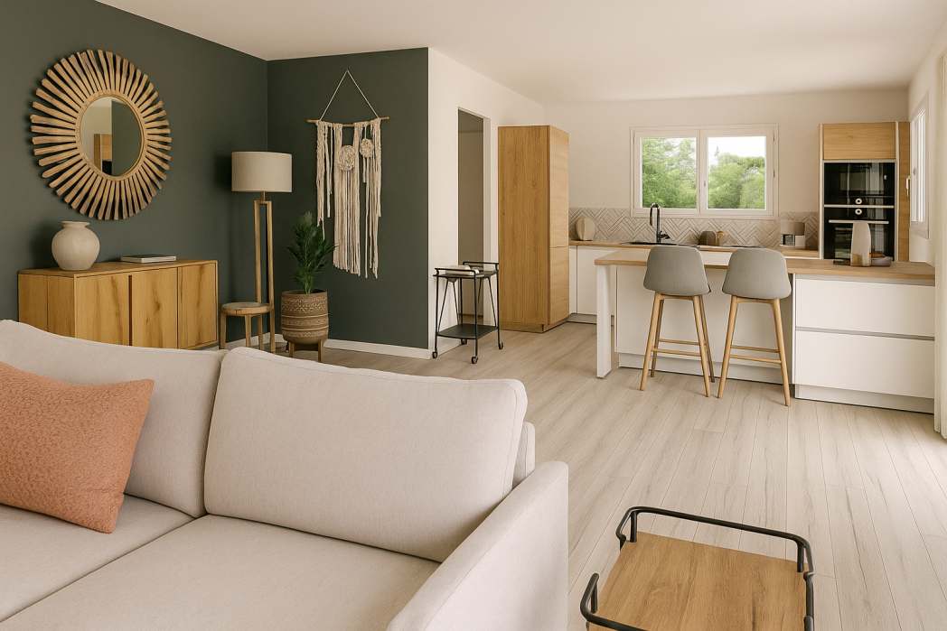 Terrain avec maison 4 pièces Saint-Saturnin-lès-Avignon (84450) - Située à Saint-Saturnin-lès-Avignon (84450), cette offre terrain + maison de 98 m² à construire se démarque favorablement des projets similaires du secteur par la qualité de son implantation et par une conception en L particulièrement recherchée pour son confort et son intimité. Édifiée de plain-pied sur un terrain viabilisé de 515 m² en diffus, à proximité immédiate des écoles, des transports et des commodités du quotidien, cette maison de style traditionnel propose une organisation fluide et lumineuse avec un vaste espace de vie ouvert prolongé par une cuisine américaine conviviale, une entrée structurée, un cellier pratique, une suite parentale avec dressing et salle de bains, deux chambres supplémentaires, une seconde salle de bains et un toilette indépendant. Le garage de 15 m² vient renforcer la fonctionnalité de lensemble, tandis que les volumes et les ouvertures permettent dimaginer facilement un extérieur agréable et ensoleillé, idéal pour une vie de famille sereine dans un environnement résidentiel équilibré, proposé par Maisons Bati-France.